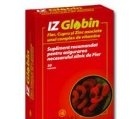 IZ Globin reprezinta un complex de Fier, Zinc, Cupru si vitamine asociate in mod natural astfel incat sa completeze aportul nutritiv necesar organismului anemic. Anemia apare in urma unor pierderi majore de sange (hemoragii externe sau interne, ulcere grave, metroragii post-chirurgicale sau post-sarcina), pierderi minore uneori indetectabile, sau in cazul bolilor care duc la distrugerea globulelor rosii (hemoliza). Alteori producerea globulelor rosii este deficitara, ca urmare a lipsei de fier (anemie hipocroma), sau de vitamine (anemie hipercroma). Scaderea numarului de globule rosii din sange scade cantitatea de oxigen pe care o transporta sangele la tesuturi si se produc tulburari generale (slabiciune, oseala, produc tulburari generale (slabiciune, oseala, decolorarea tegumentelor). Fierul (Iron), zincul si cuprul se regasec in componenta unor proteine structurale ale organismului, cel mai important fiind Fierul deoarece intra in componenta hemoGlobinei.